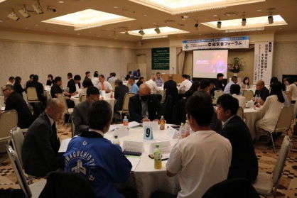 10月17日(金)13時から「適者生存 ~生き残るために変わっていこう~」をテーマに、第28回経営者フォーラムがシーモールパレスにて開催されました。当日は会員とゲストなど合わせて146名が参加しましました。第1分科会には梅田益生氏((有)ウメイチ・代表取締役/岐阜県中小企業家同友会・副代表理事)を、第2分科会には小野晶紀氏((株)大有設計・代表取締役/大分県中小企業家同友会・副代表理事)を報告者に迎えました。激動の時代に生き残っていくために経営者自らが社員や地域のために学び、学んだことを実践していくことの大切さなどをご報告いただきました。グループ討論では10年後の自社が目指す未来や、社員が辞めたくなくなる会社を作るために何が必要かなどを話し合い、経営者として何をしていくべきかを学び合いました。